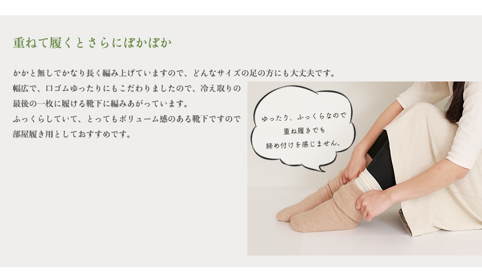 ・重ね履き最後の靴下にお使いください。分厚いので、お部屋履き用としておすすめです。
