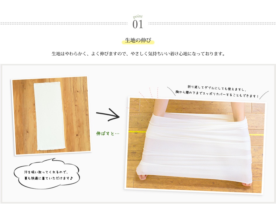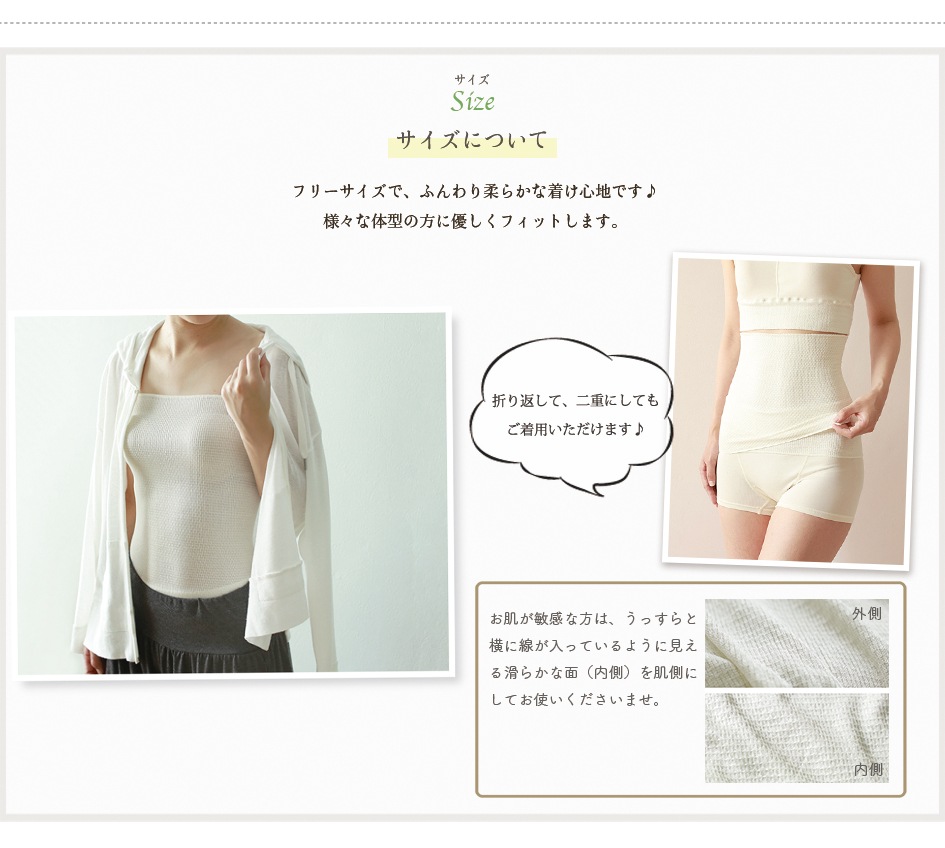 長すぎる方には、ハーフサイズのエヴァ絹腹巻がおすすめです。