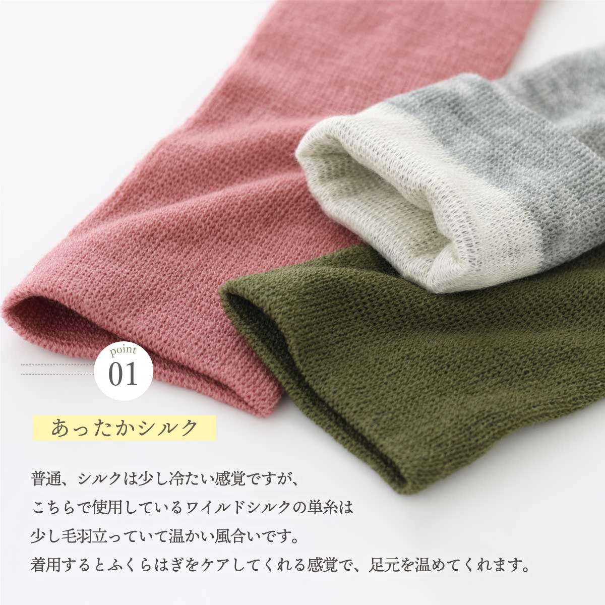 ※肌に絹があたるよう編み上げています。