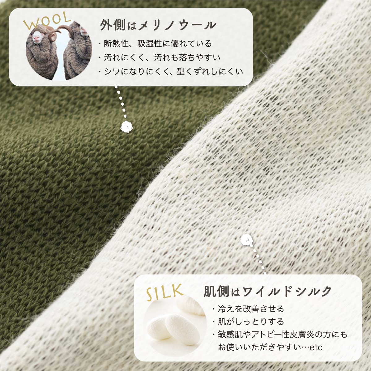 (リニューアル)季節限定 あったかシルク冷えとりウールウォーマー