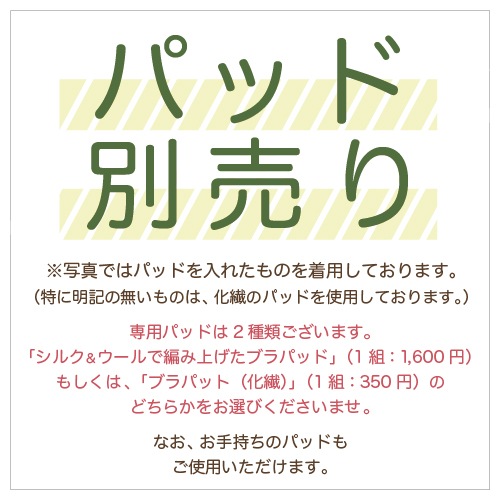 ・製品の特性上、ブラパッド装着時にパッドが透けて見えます。(薄い色のほうがより透けて見えます。)どうかご了承くださいますようお願い申し上げます。