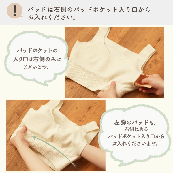 パッドポケットが片側1箇所になり、ピーナッツ型のブラパッドもご使用いただけるようになりました。