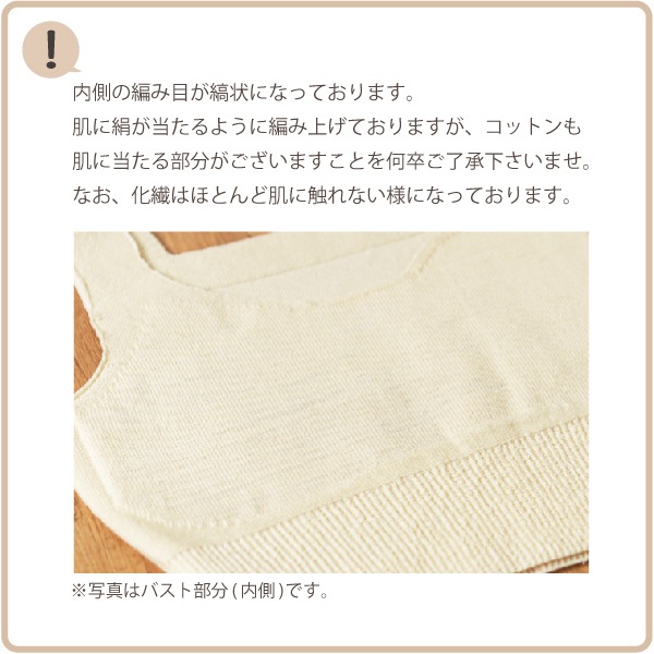 ※肌に絹があたるよう編み上げています。