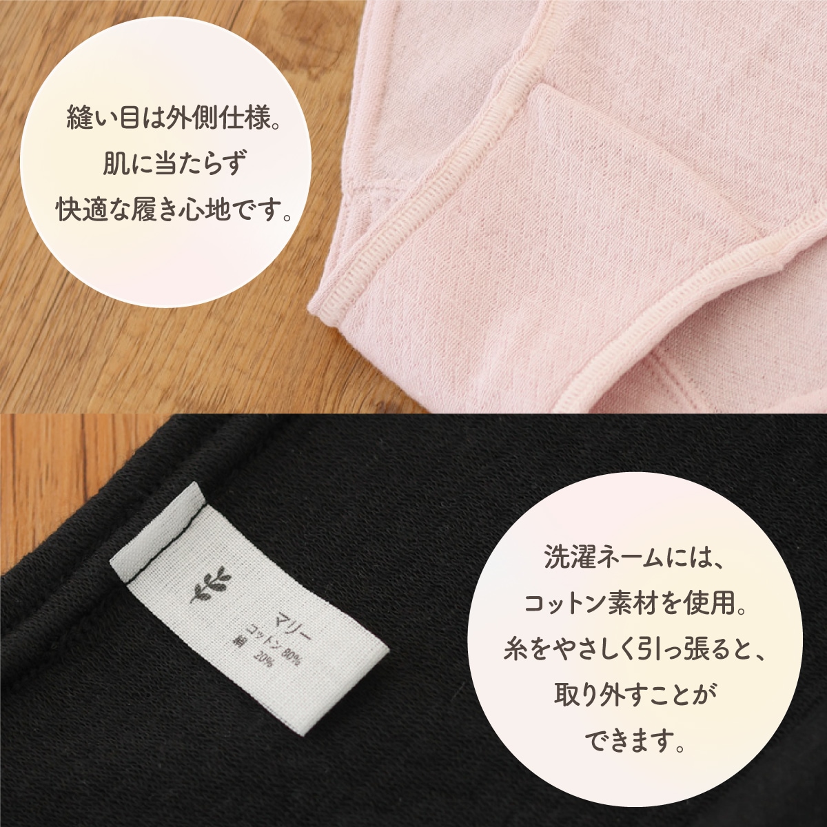 ※編みこみ伸縮糸はコットンに包まれており、肌に触れないよう編み上げています。