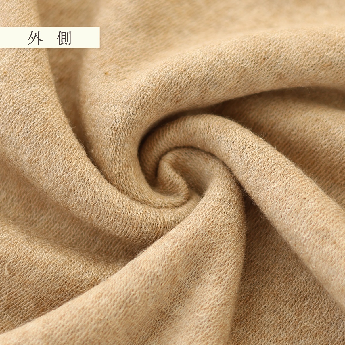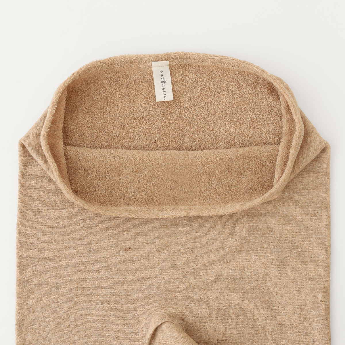 肌側は、オーガニックコットン、ワイルドシルク、カシミヤの混紡糸で、パイル状になっていますので、