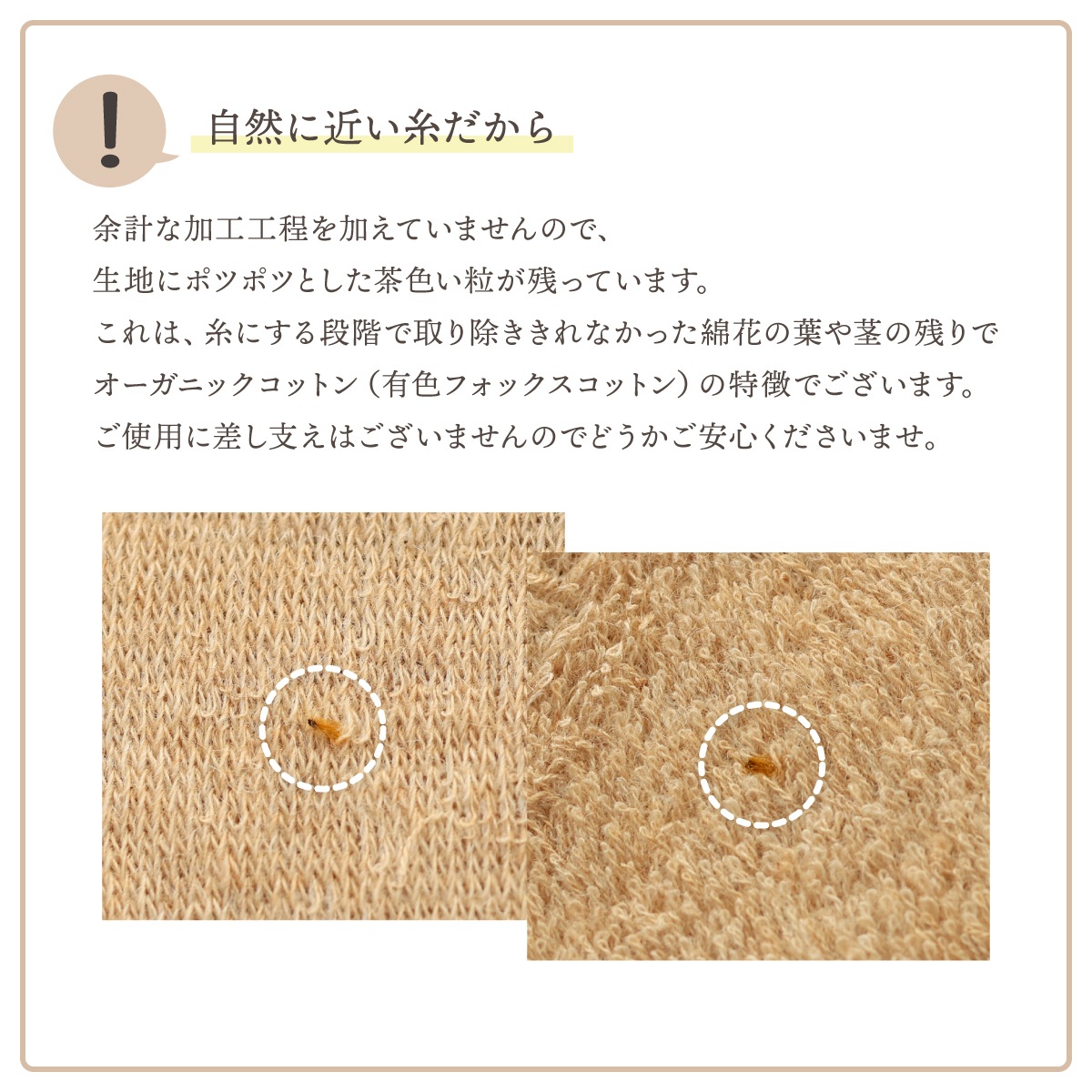 ※肌に当たる部分(パイル)は、オーガニックコットン、ワイルドシルク、カシミヤ混紡糸で編み上げています。