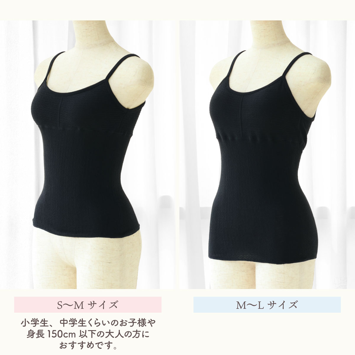 ・S~Mサイズの製品は、小学生、中学生くらいのお子様や、身長150cm以下の大人の方におすすめです。