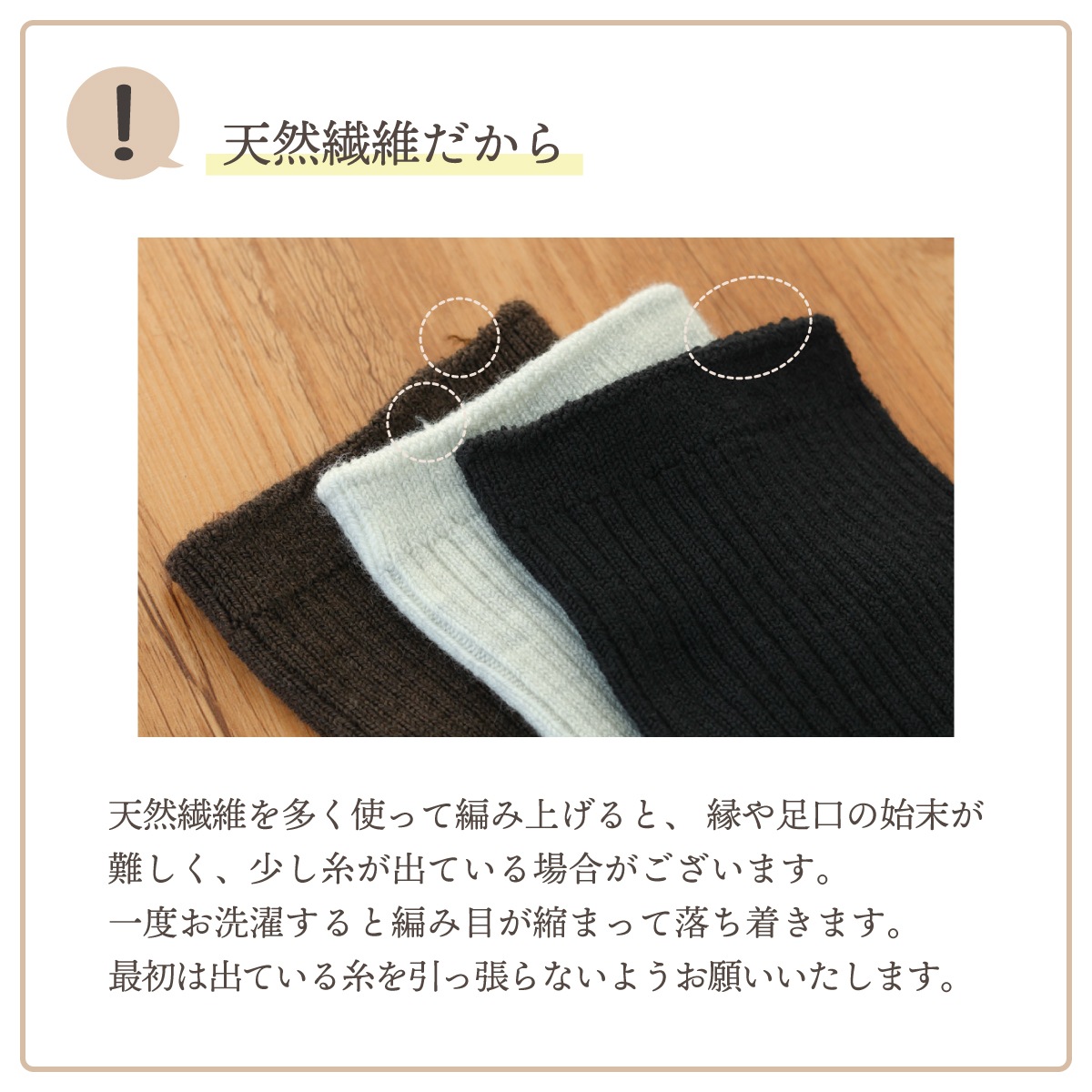 ・天然繊維をたっぷり使い、締め付けないようにふんわりとした風合いに仕上げると