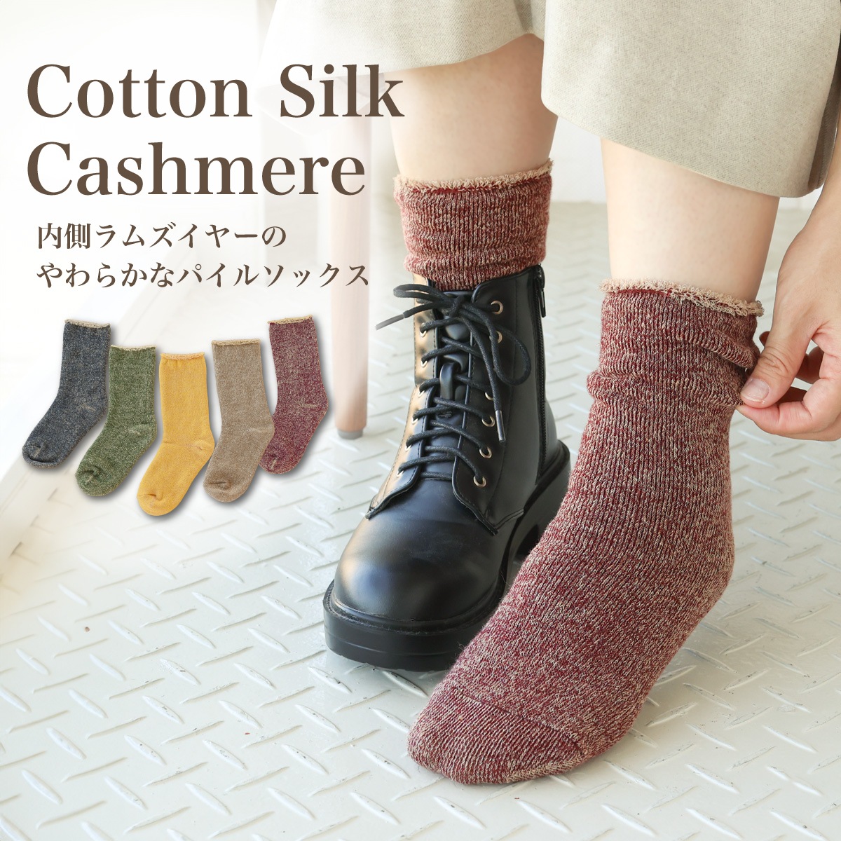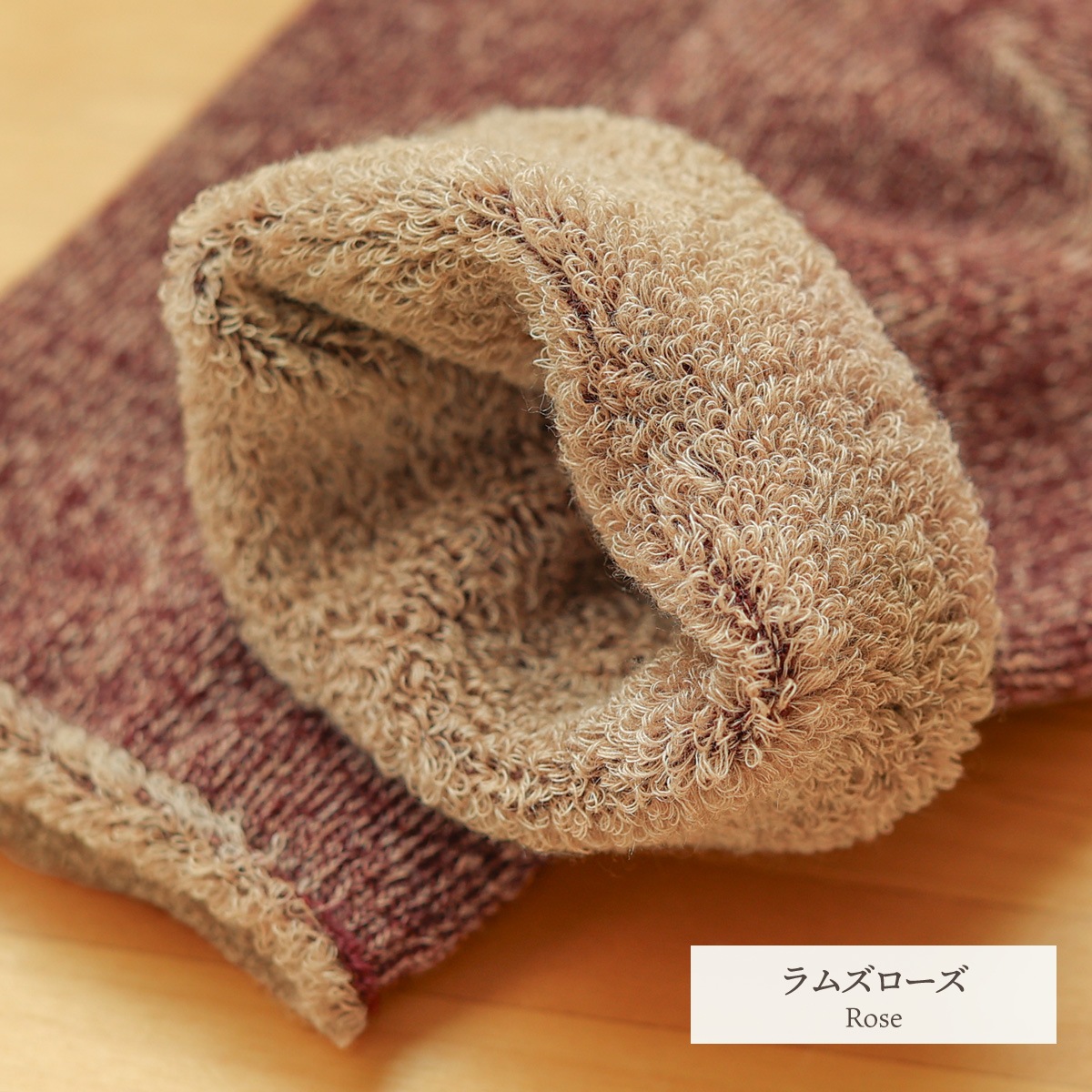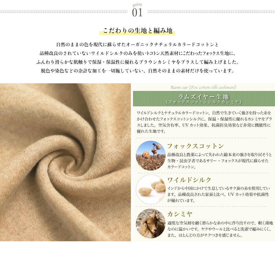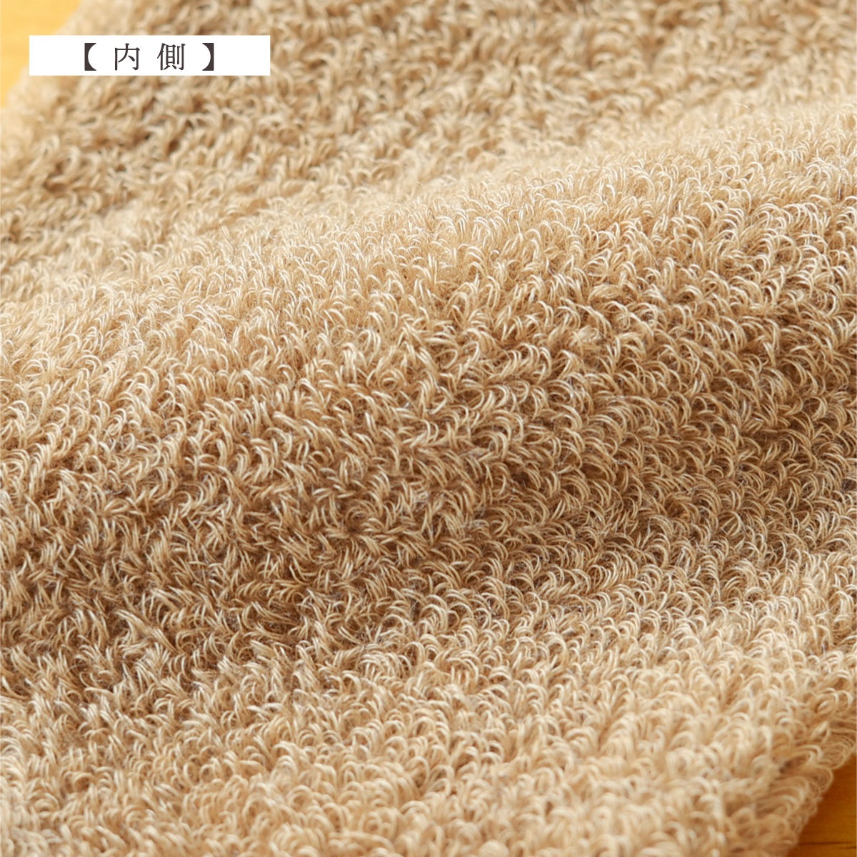 ※肌に当たる部分(パイル)は、オーガニックコットン、ワイルドシルク、カシミヤ混紡糸で編み上げています。