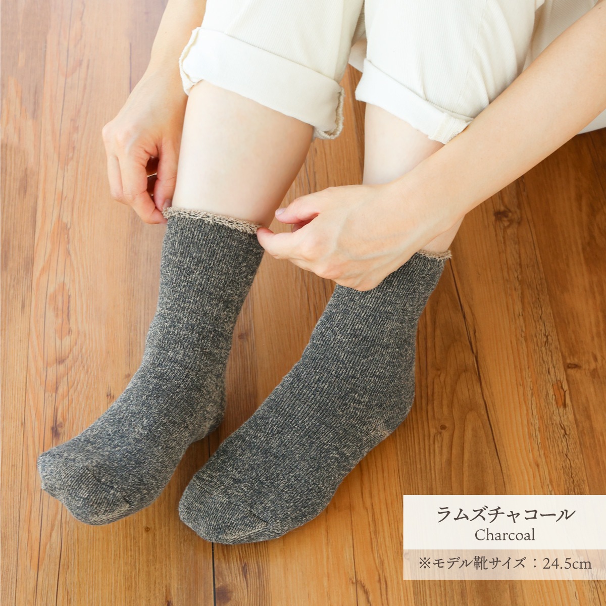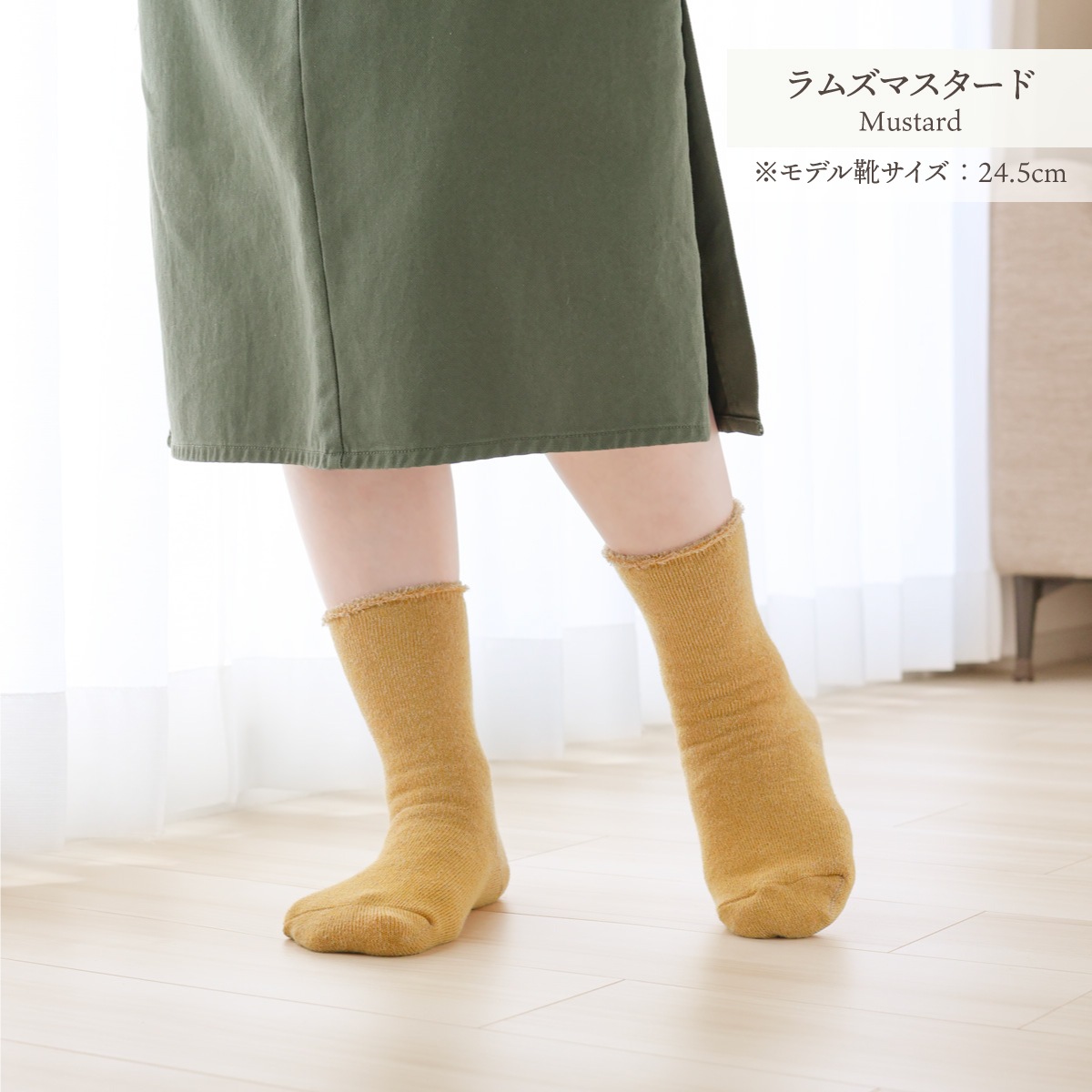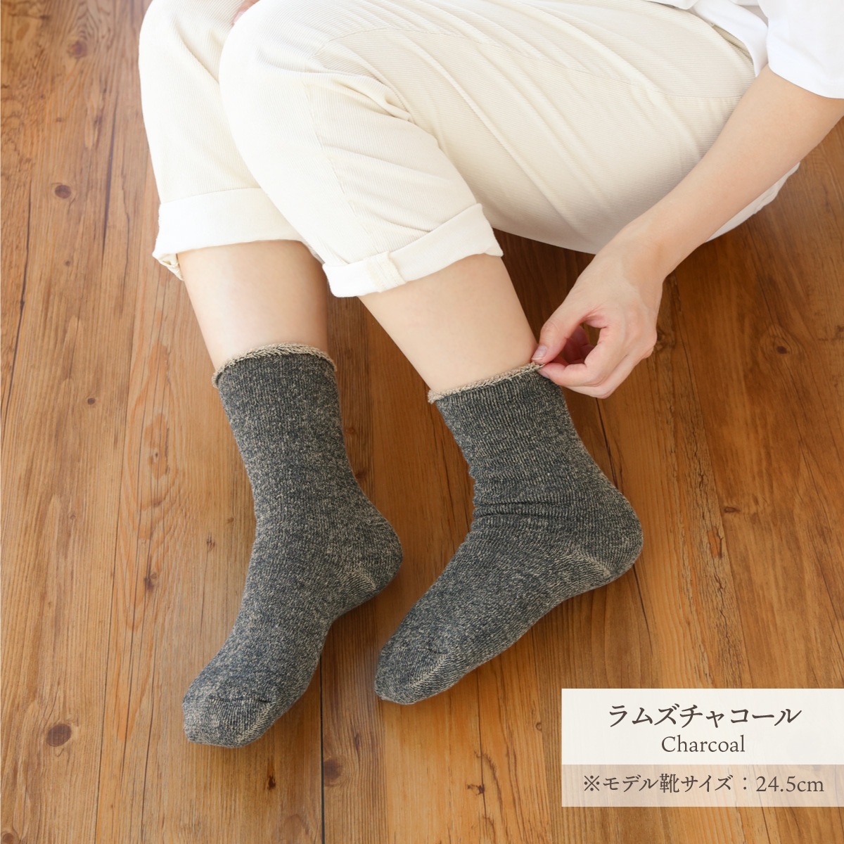 内側ラムズイヤーのやわらかなパイルソックスができあがりました。