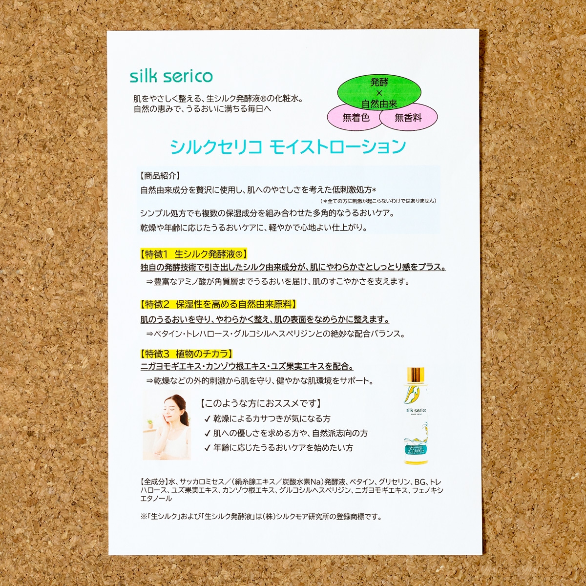 ※「生シルク」および「生シルク発酵液」は株式会社シルクモア研究所の商標登録です。