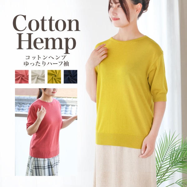 コットンヘンプ ゆったりハーフ袖