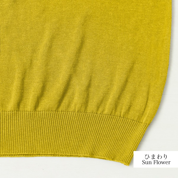 オーガニックコットンとヘンプを綿の段階で混ぜて混紡にした糸で編み上げました。