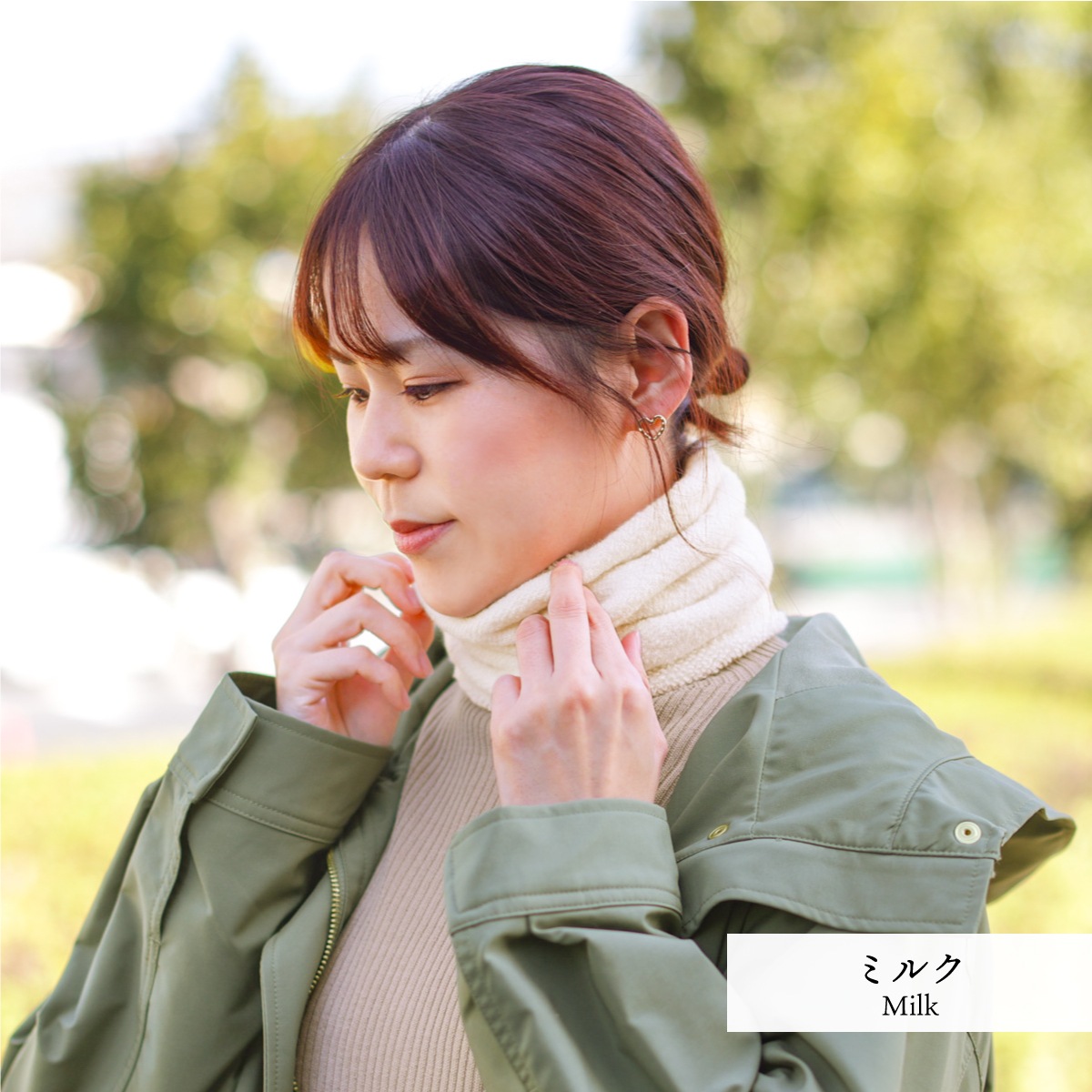 ネックウォーマーの他にもイヤーマフやヘアバンドとして、様々な用途で温かく心地良くお使いいただけます。