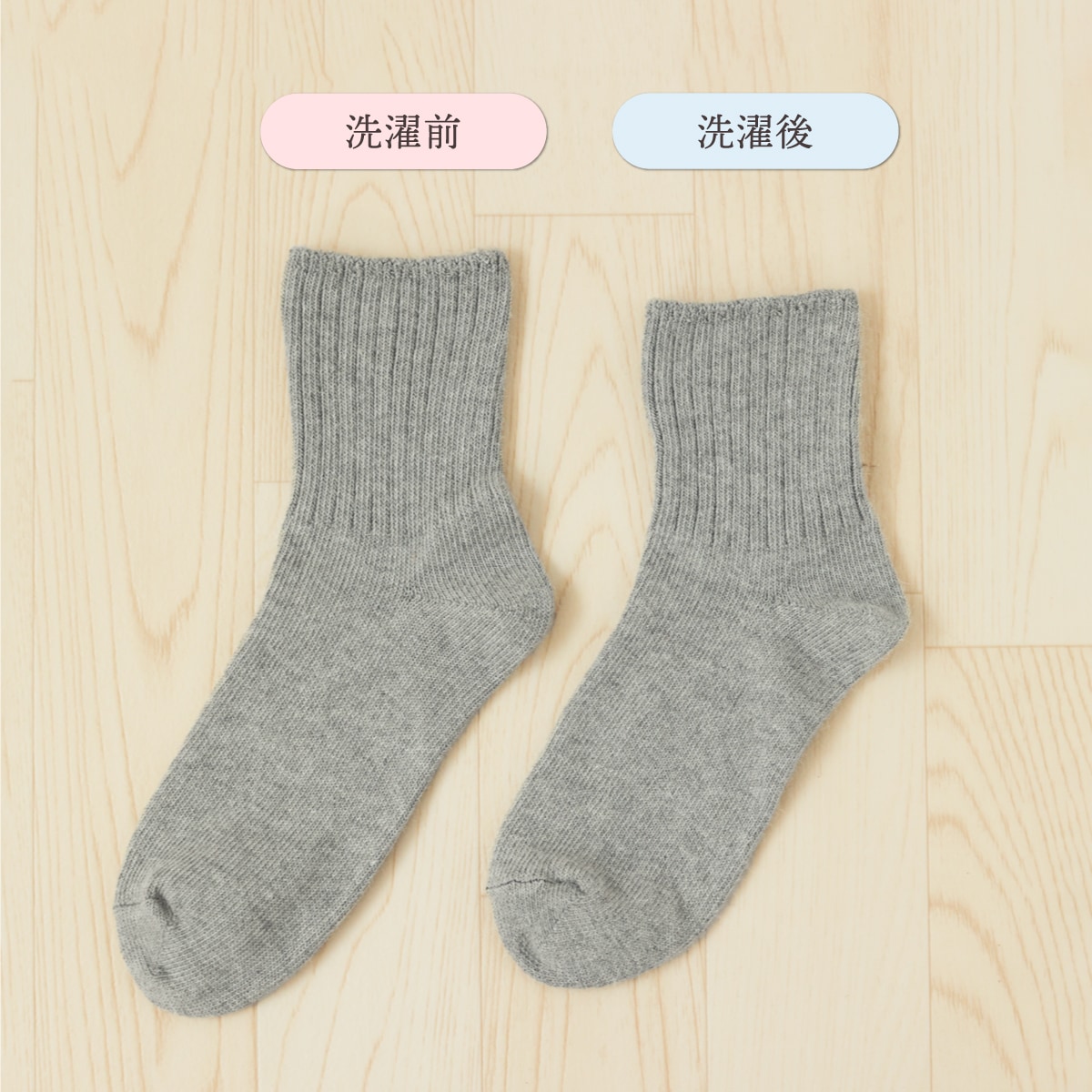 お洗濯で通常の天然繊維靴下くらいの縮率で縮みますが、
