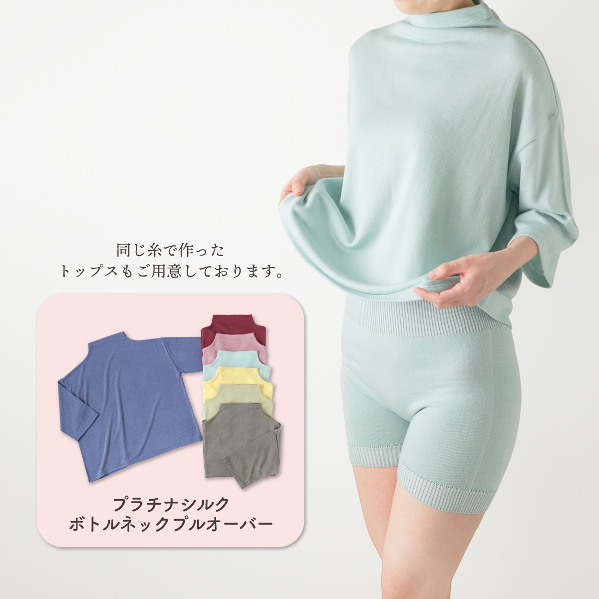 シルクとレーヨンの混紡糸で、さらりとした手触りが心地良いショートパンツを編み上げました。