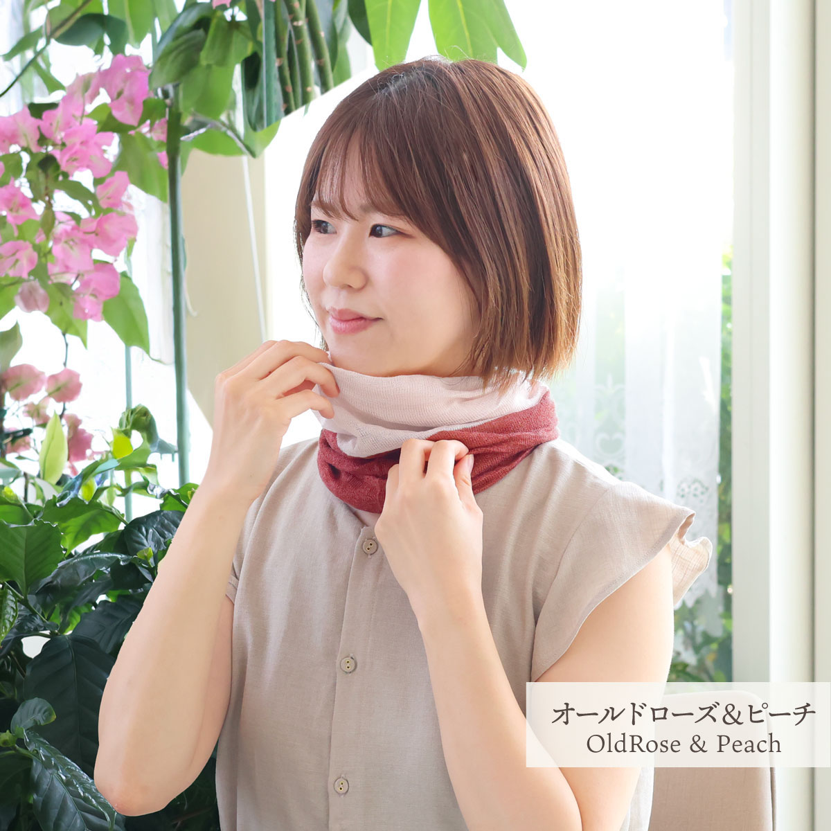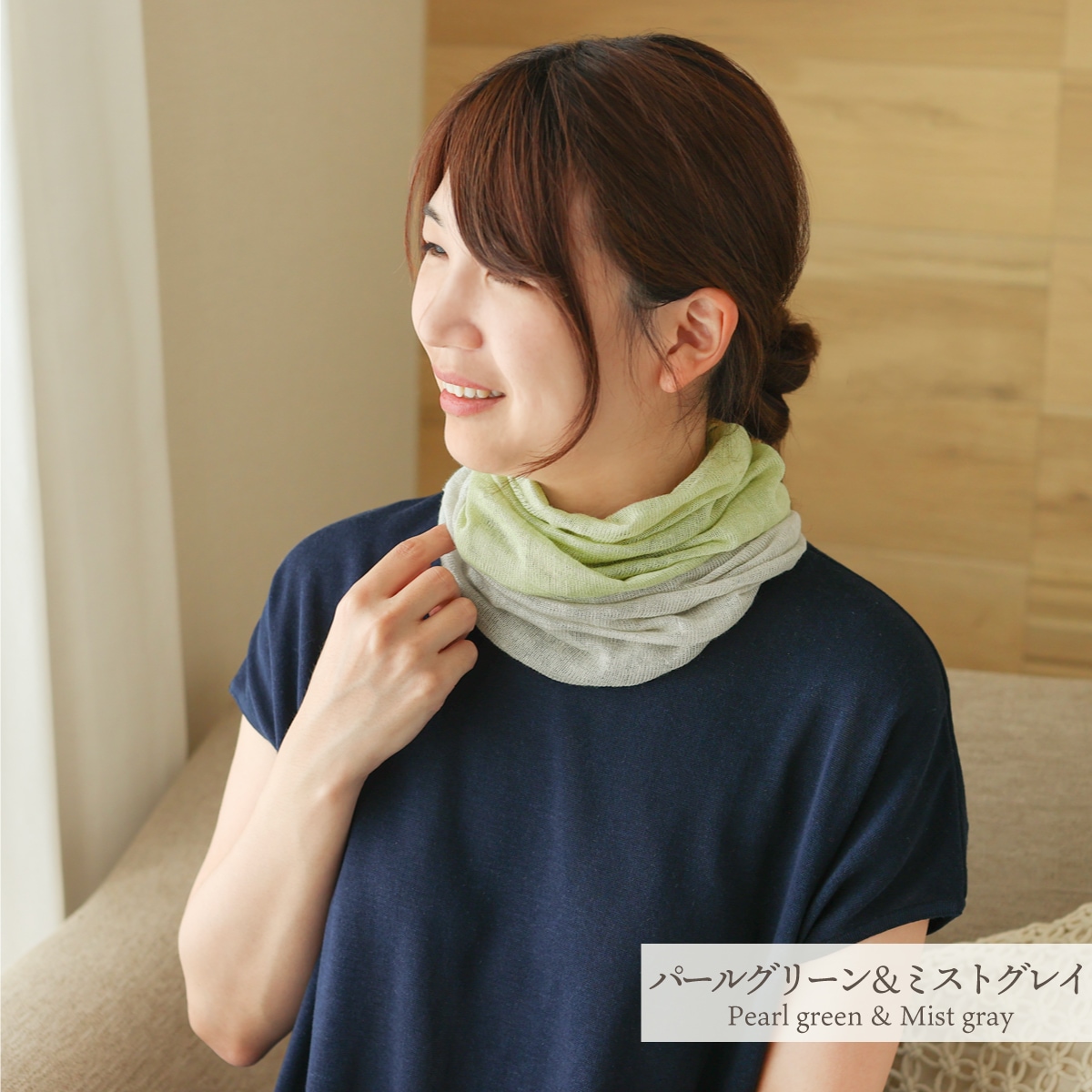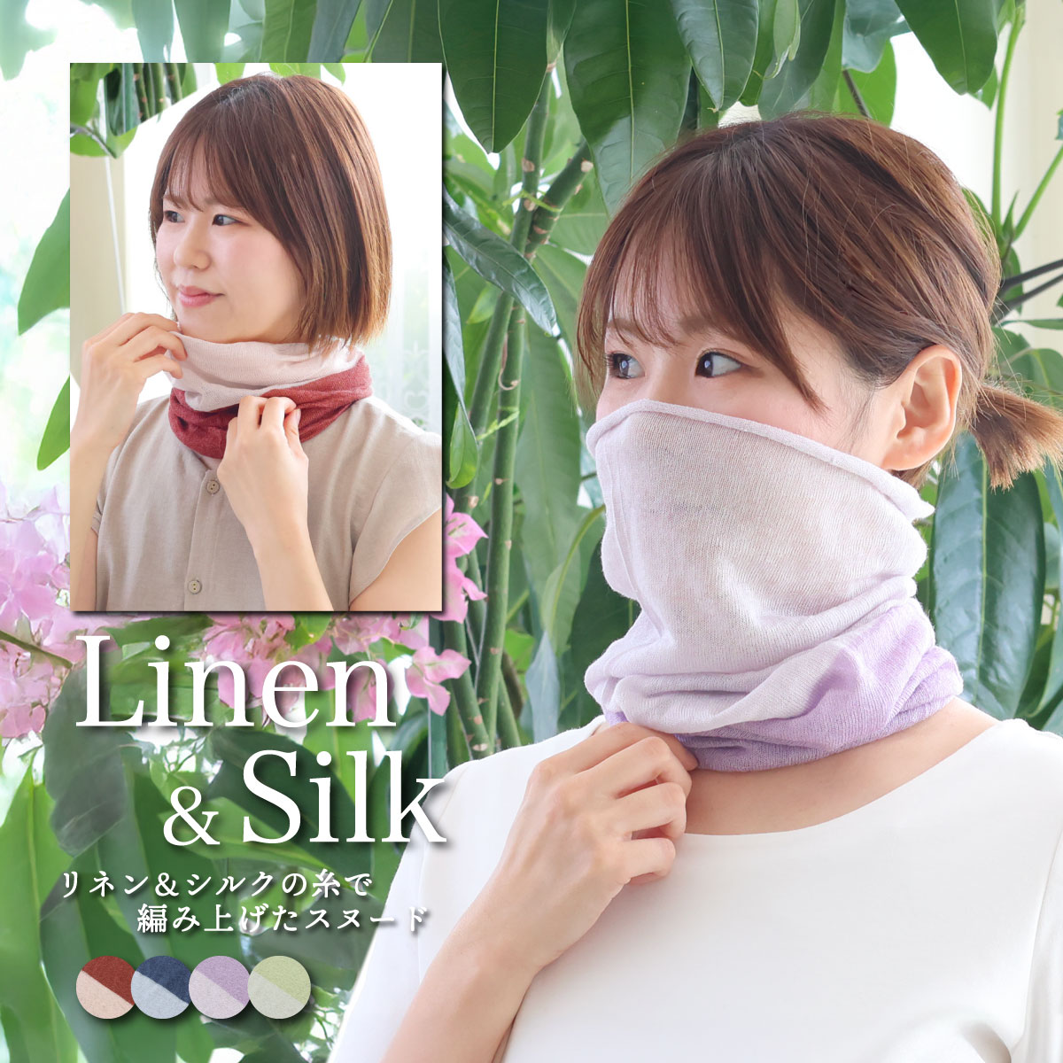 爽やかなリネンと、肌触りの優しいシルクで編み上げたスヌードです。