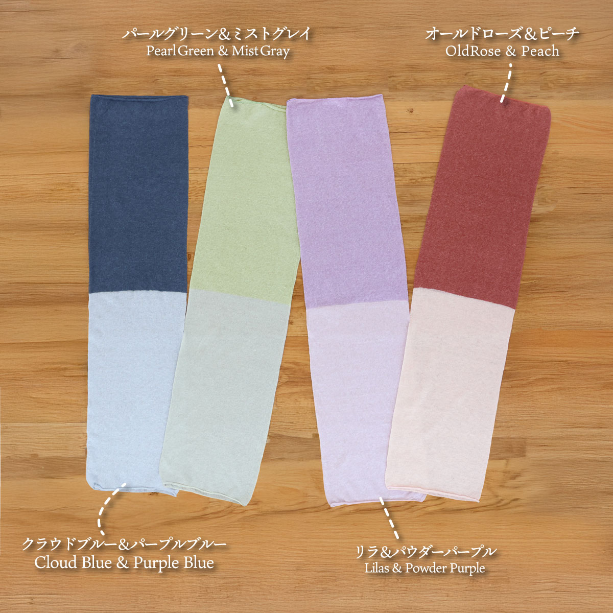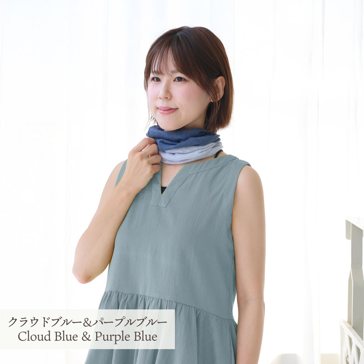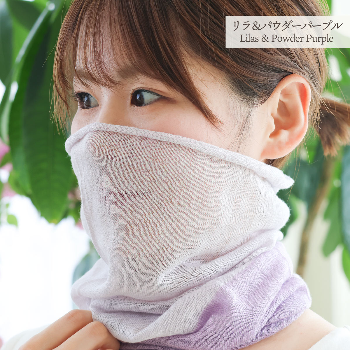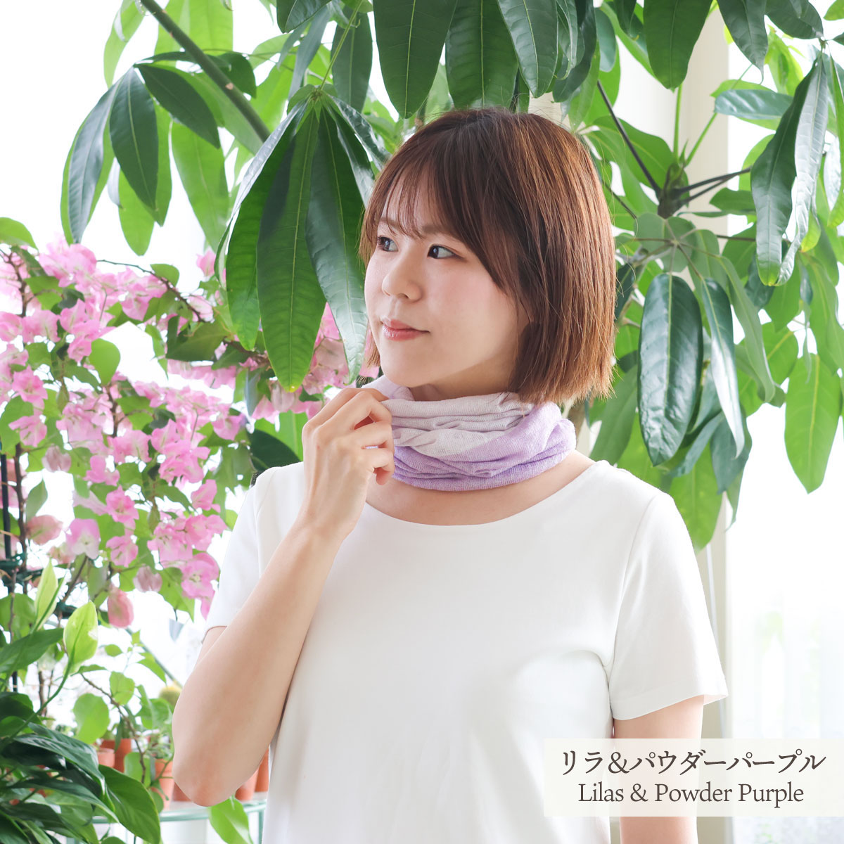 両端には伸縮糸が入っており、首元に沿いやすく、お使いいただきやすいデザインです。