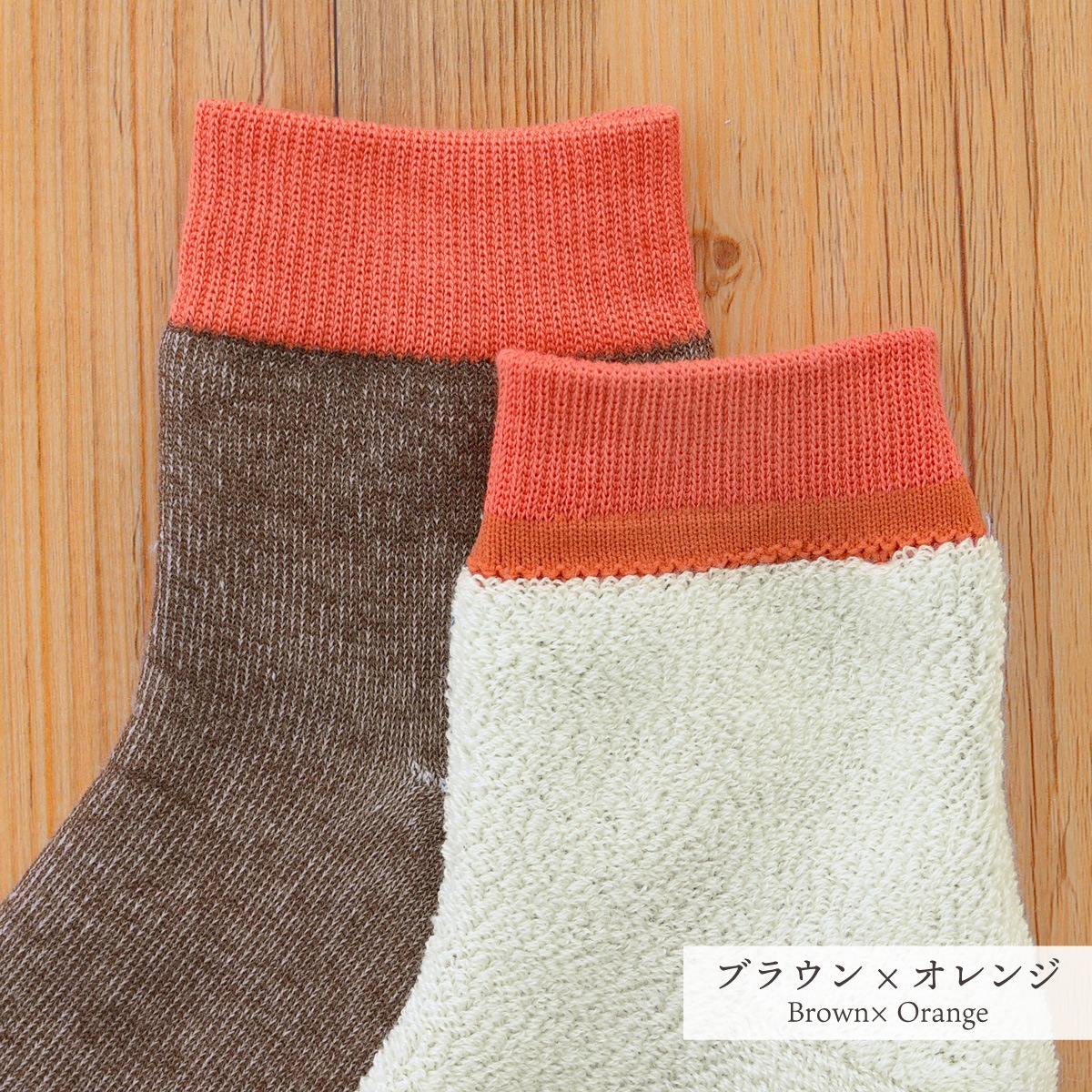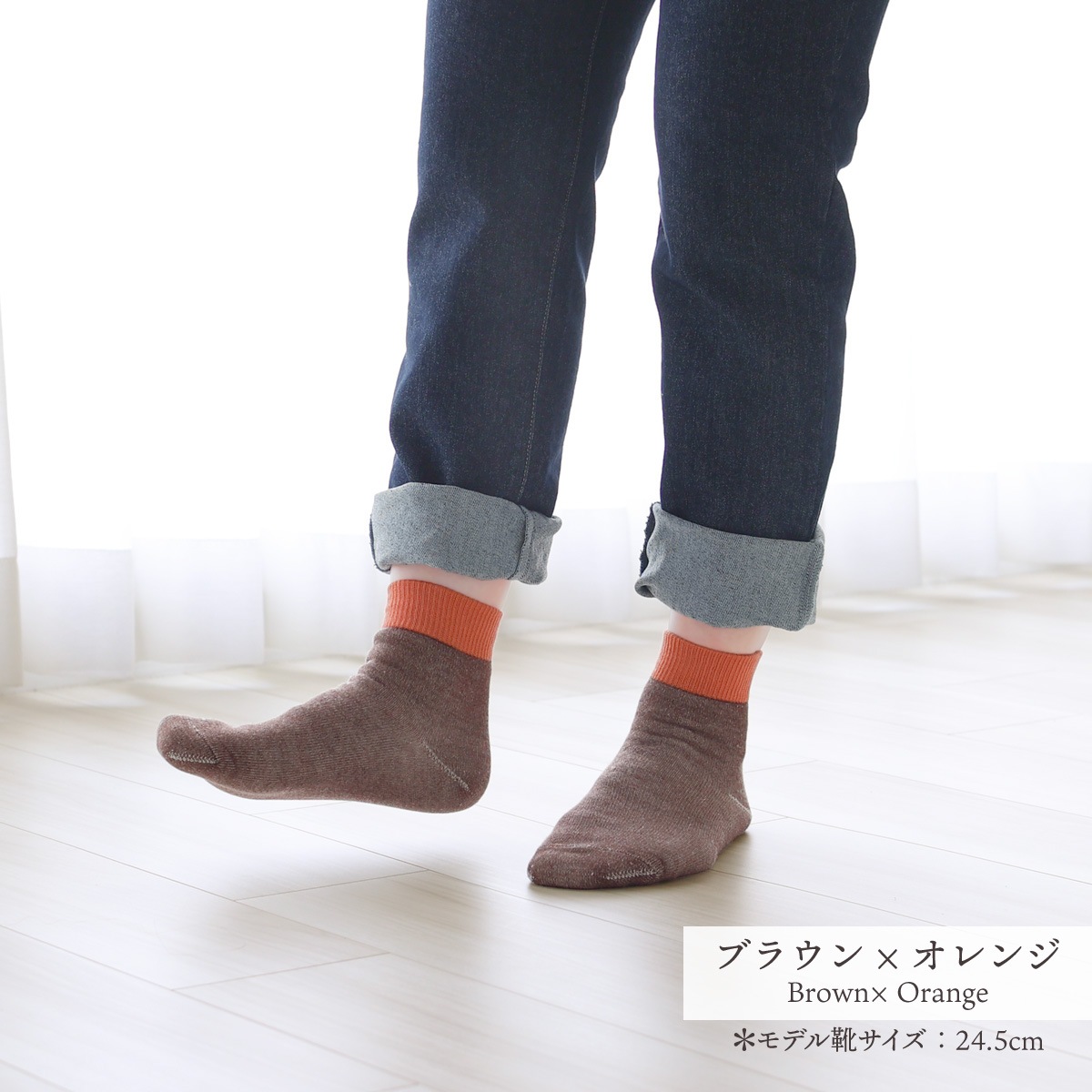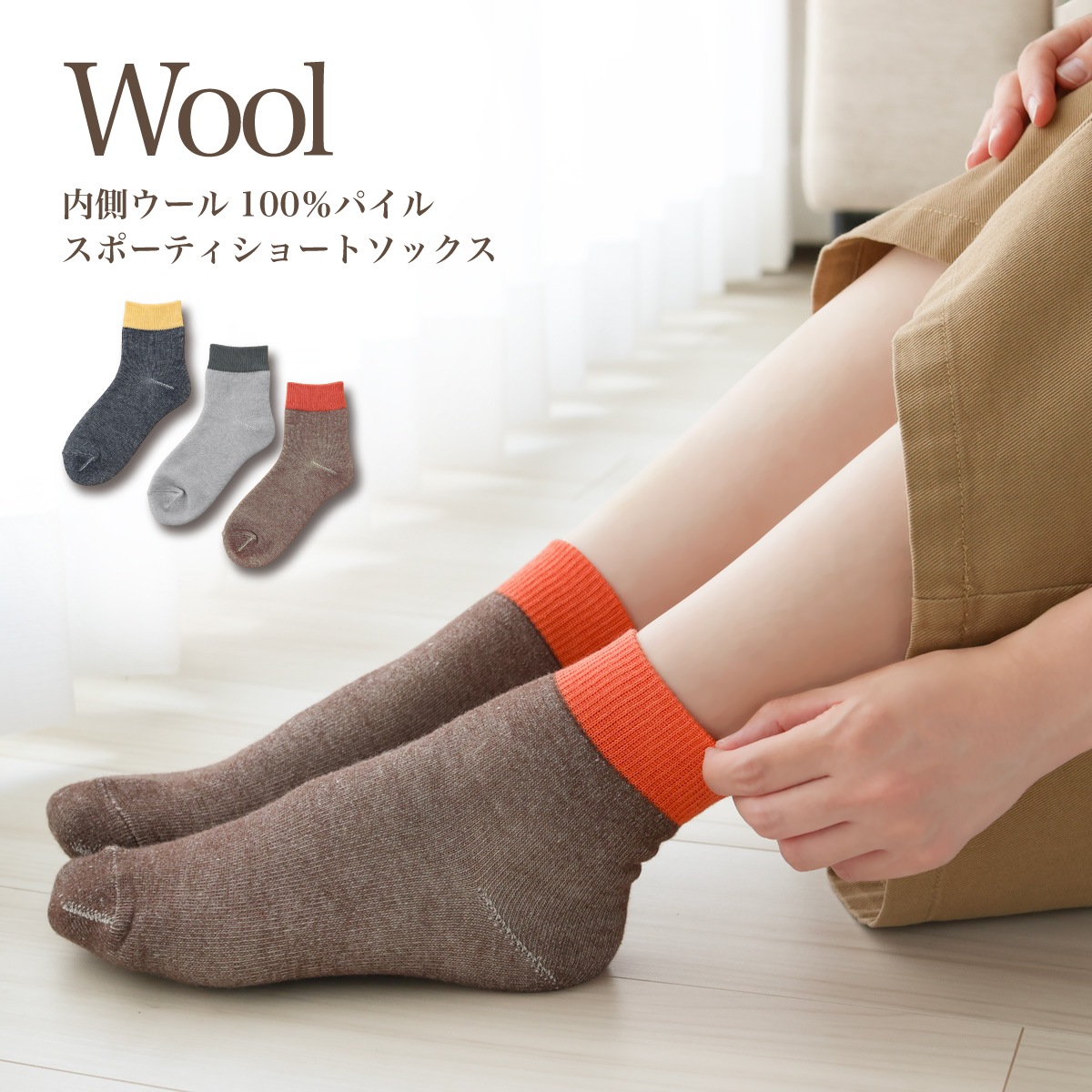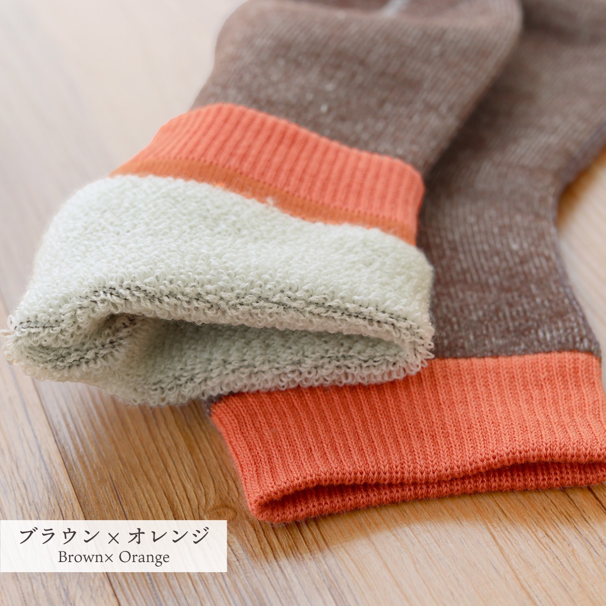 バイカラーがおしゃれな内側ウールパイルの靴下です。