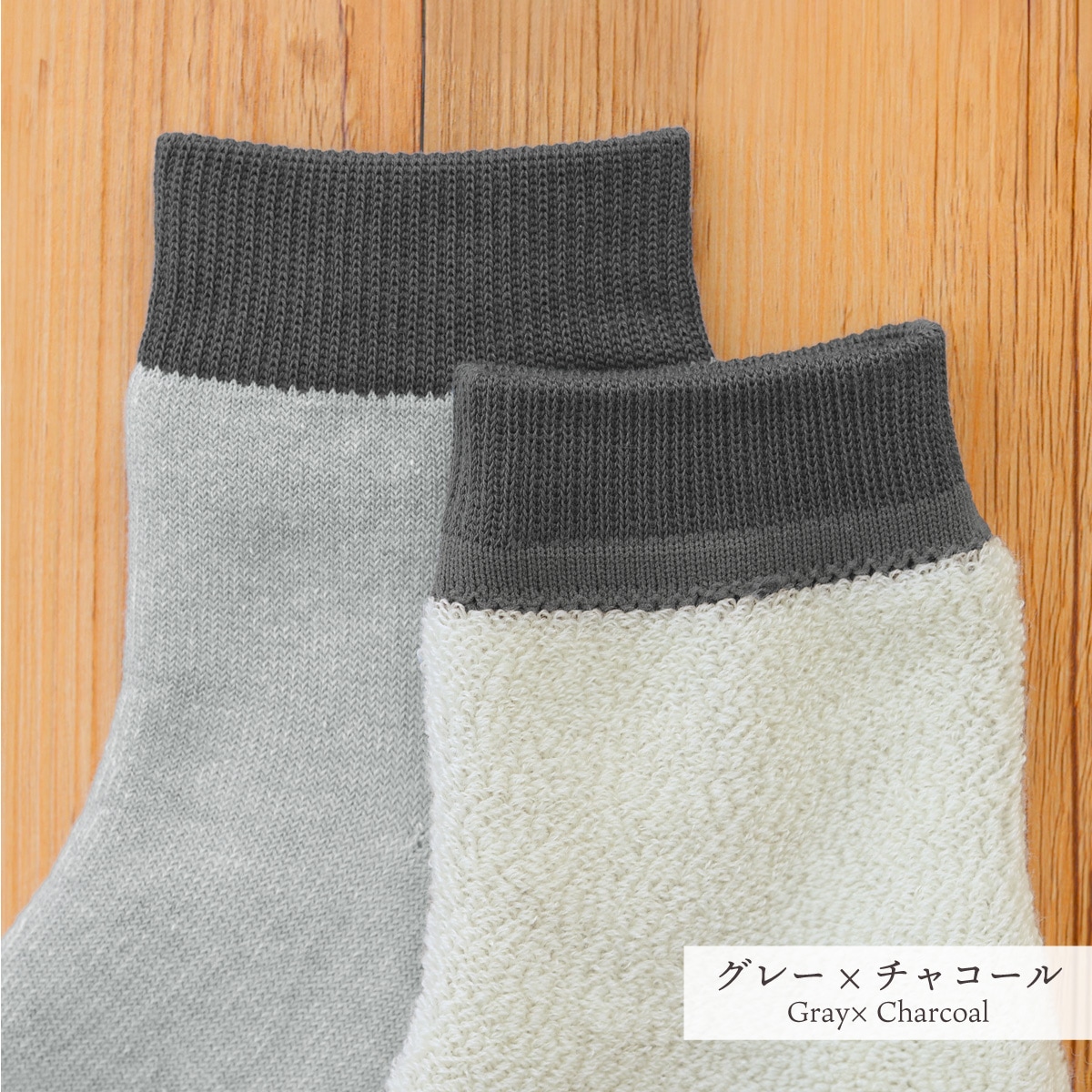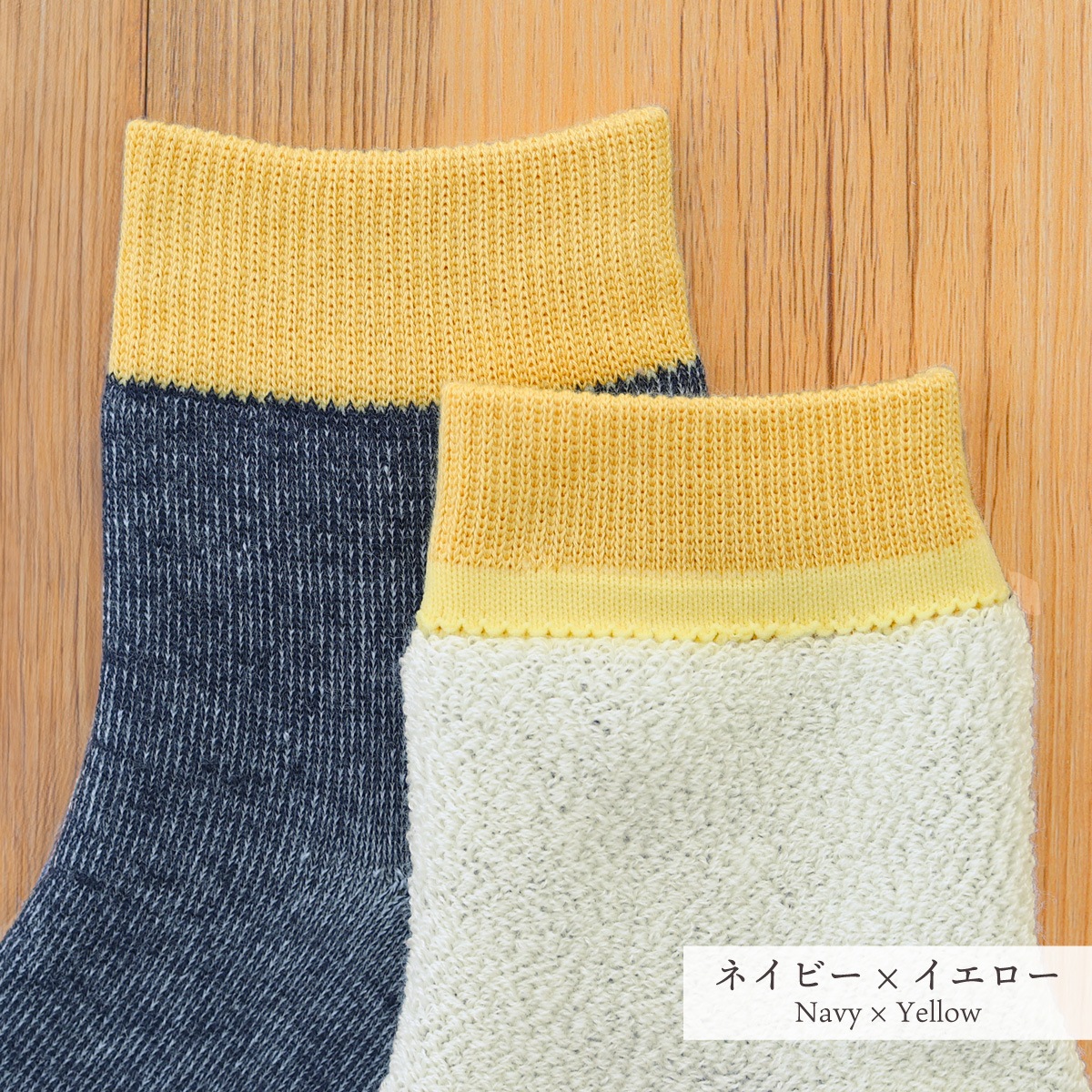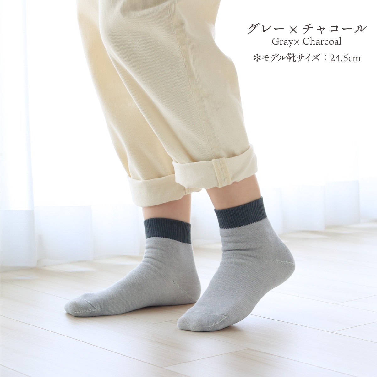 バイカラーがおしゃれな内側ウールパイルの靴下です。