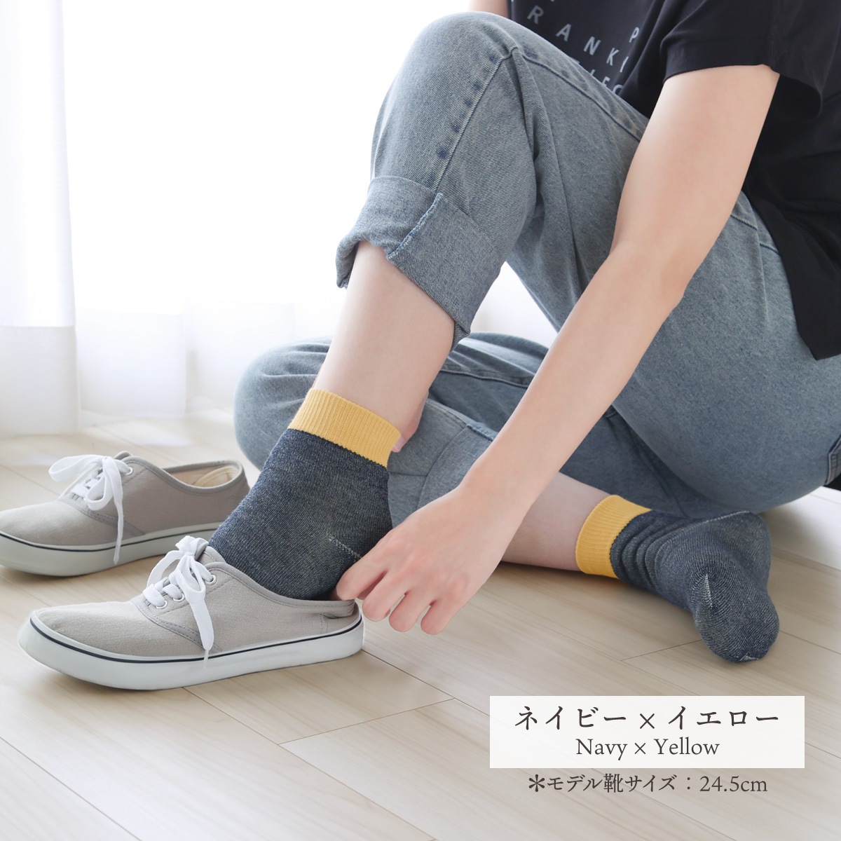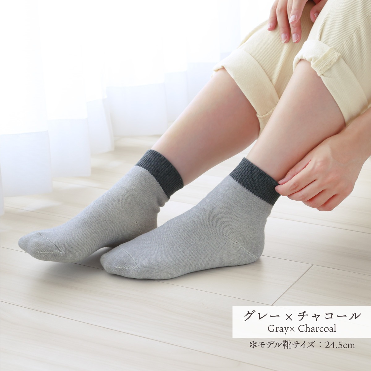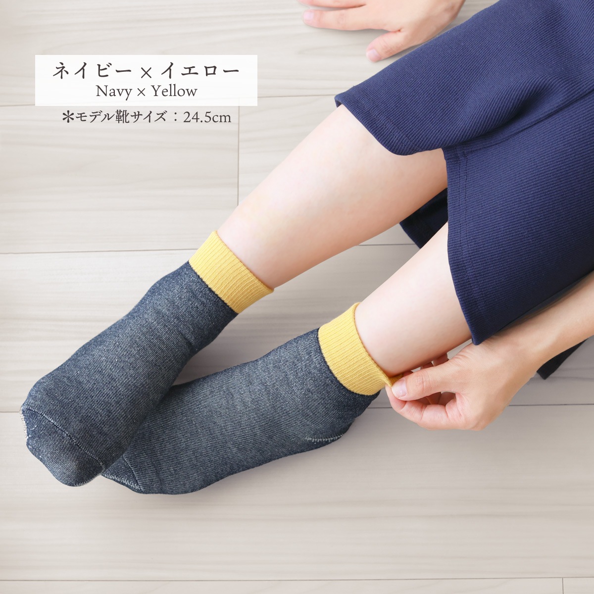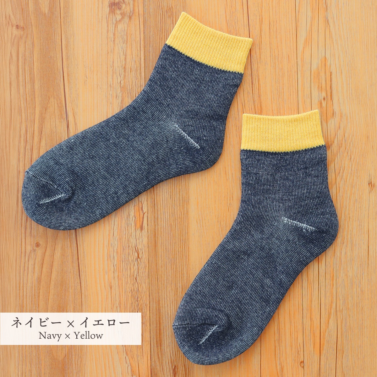バイカラーがおしゃれな内側ウールパイルの靴下です。