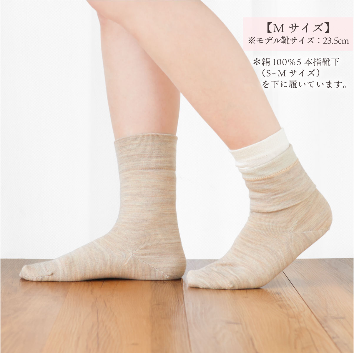 内側シルク、外側ウールになっていて、弾性糸を入れていないので、