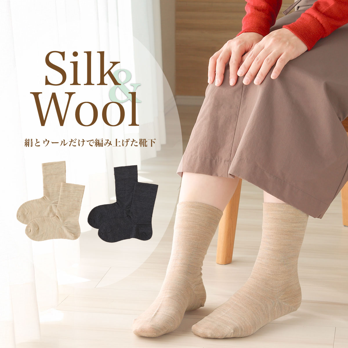 絹とウールだけで編み上げた靴下