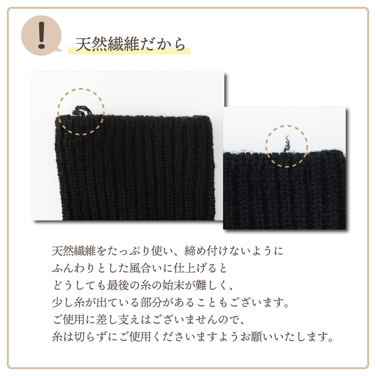 ・天然繊維をたっぷり使い、締め付けないようにふんわりとした風合いに仕上げると