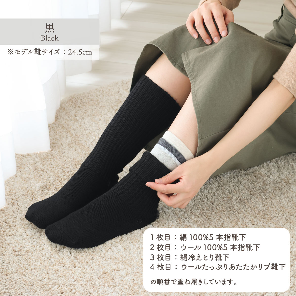 ウールたっぷりあたたかリブ靴下