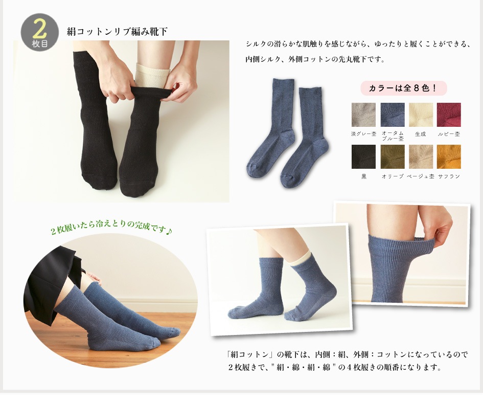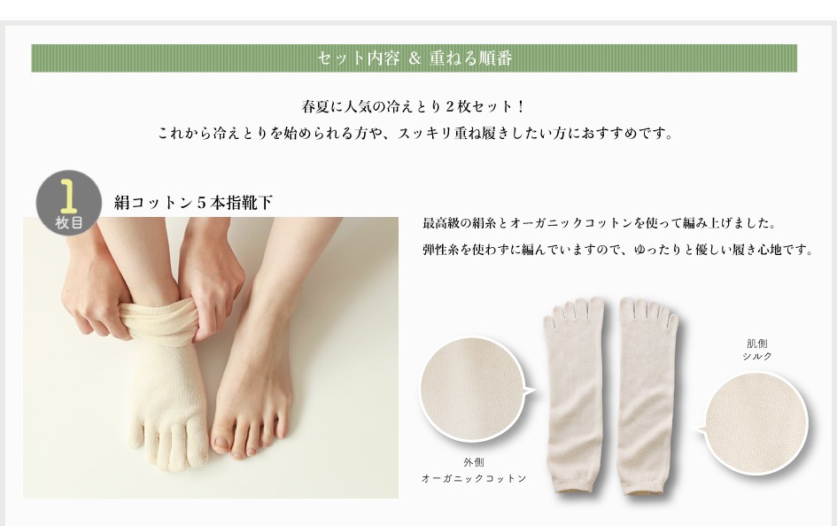 (リニューアル前)冷えとり絹コットン2枚セット