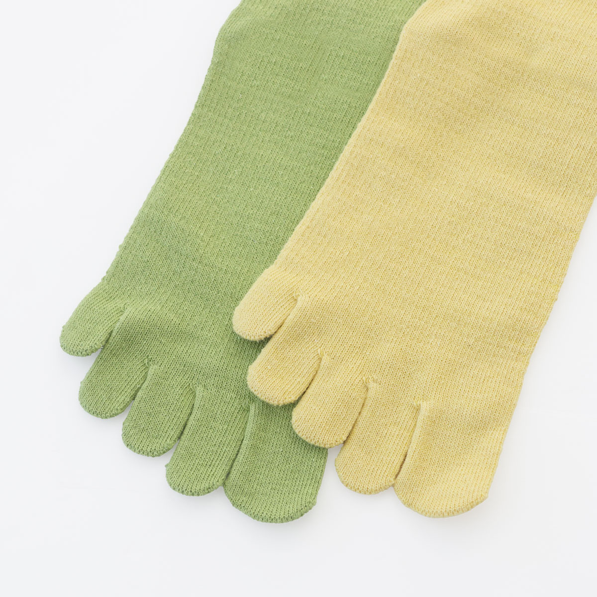 ・編み立ての都合で、基本的に5本指靴下の指先・内側には糸が出ています。5本指靴下の特性ですので、切らずにそのままご着用をお願いいたします。