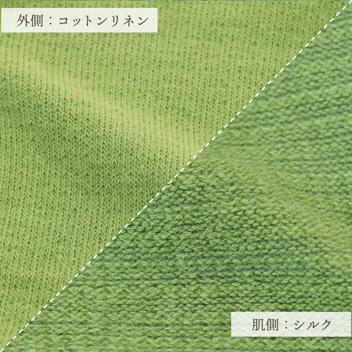 ※肌に絹があたるよう編み上げています。
