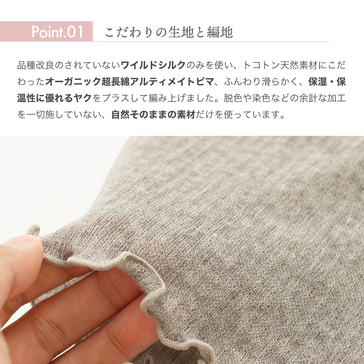 ※オーガニックコットン、ワイルドシルク、ヤクの混紡糸を使用しています。