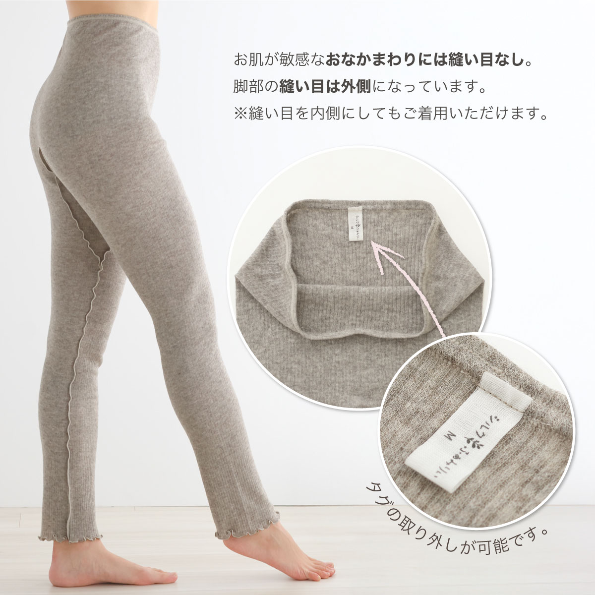 ・生地に裏表がありませんので、縫い目は内側にしても外側にしても着用していただけます。
