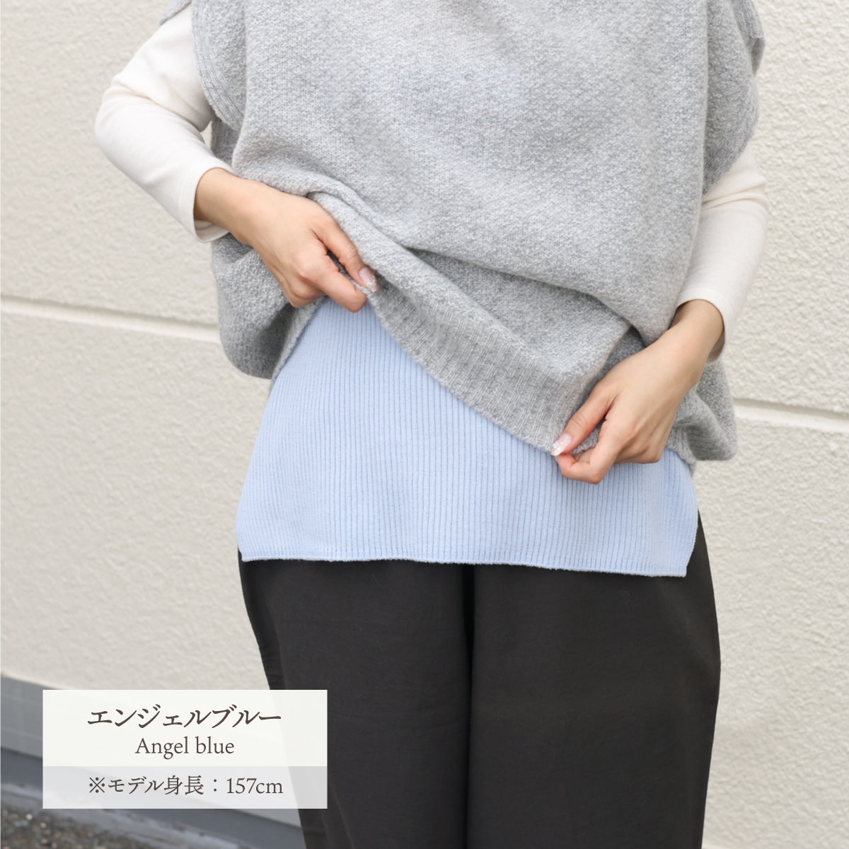 重ね着風の着こなしが楽しめる、新しい形の腹巻です。