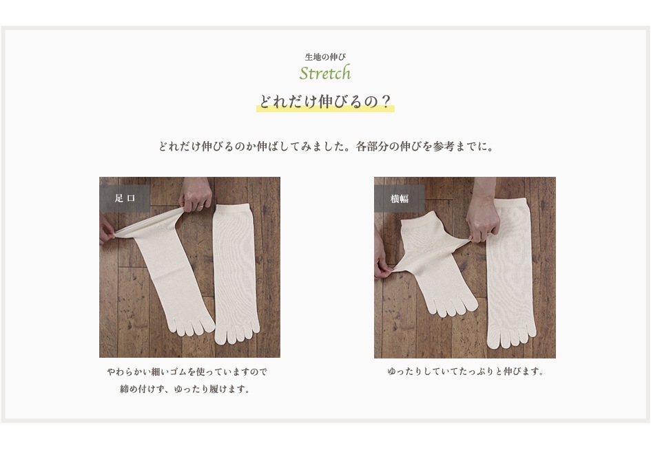 ・編み立ての都合で、基本的に5本指靴下の指先・内側には糸が出ています。5本指靴下の特性ですので、切らずにそのままご着用をお願いいたします。