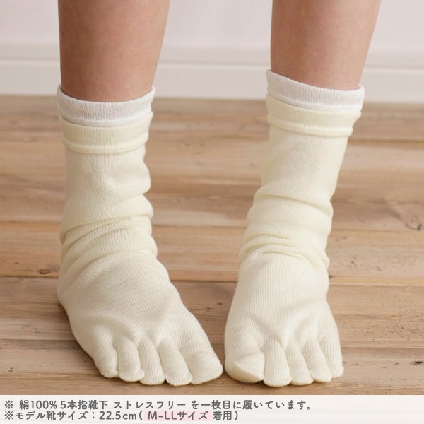 絹やオーガニックコットンの5本指靴下ストレスフリーほどには薄くなっておりません。