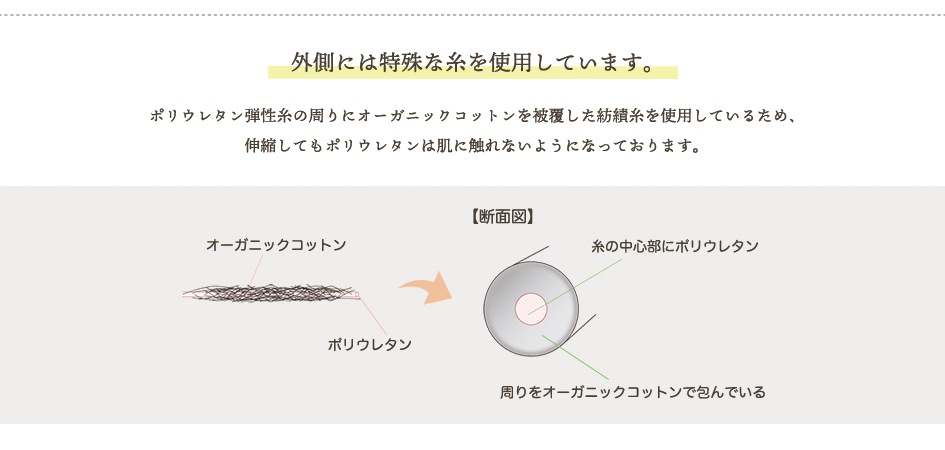 ※ポリウレタンはコットンに包まれており、肌に触れないよう編み上げています。