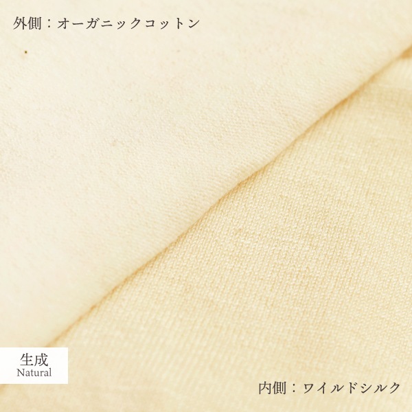 コットン52%(オーガニックコットン) 絹43%(生成りはワイルドシルク) ポリウレタン5%