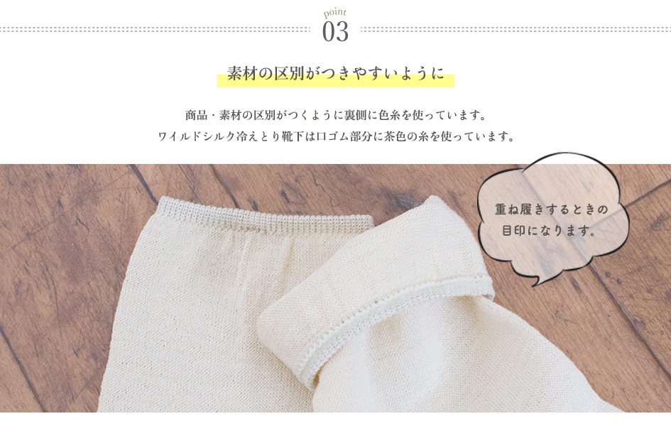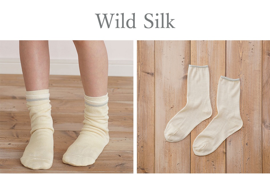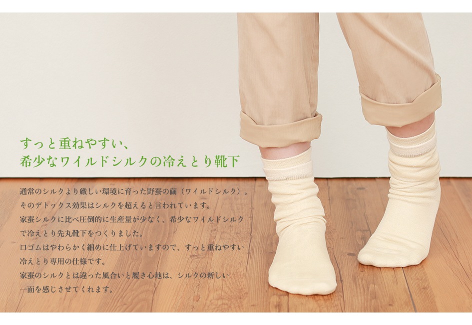 シルクふぁみりぃ不動の一番人気商品「絹冷えとり靴下」をワイルドシルクの糸で作りました。