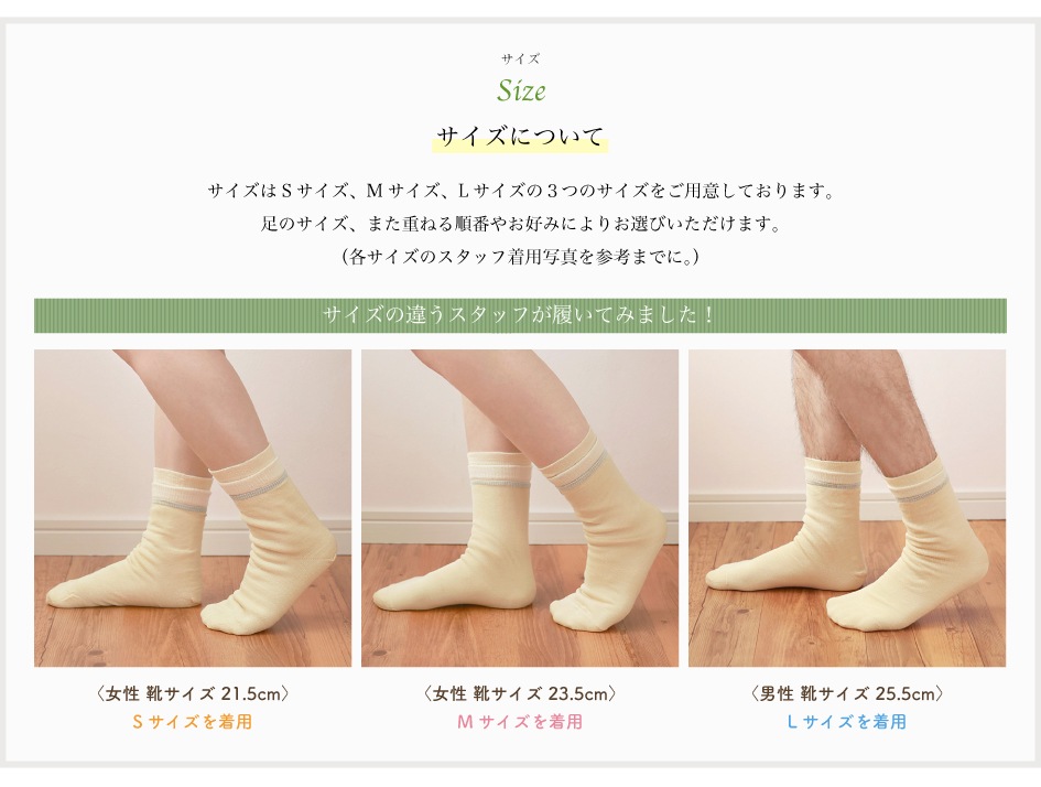たくさん重ねられるお客様はサイズを変えてご利用いただける靴下となっています。