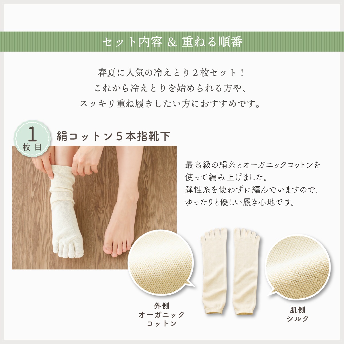 ただ、1枚目の絹コットン5本指靴下は 足の小さい方ですと、足指部分が少し余る可能性がございます。