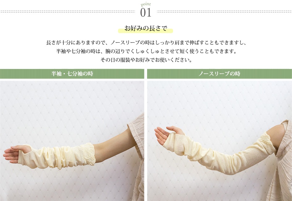ふんわり柔らかいロングタイプのUVカットスリーブです。