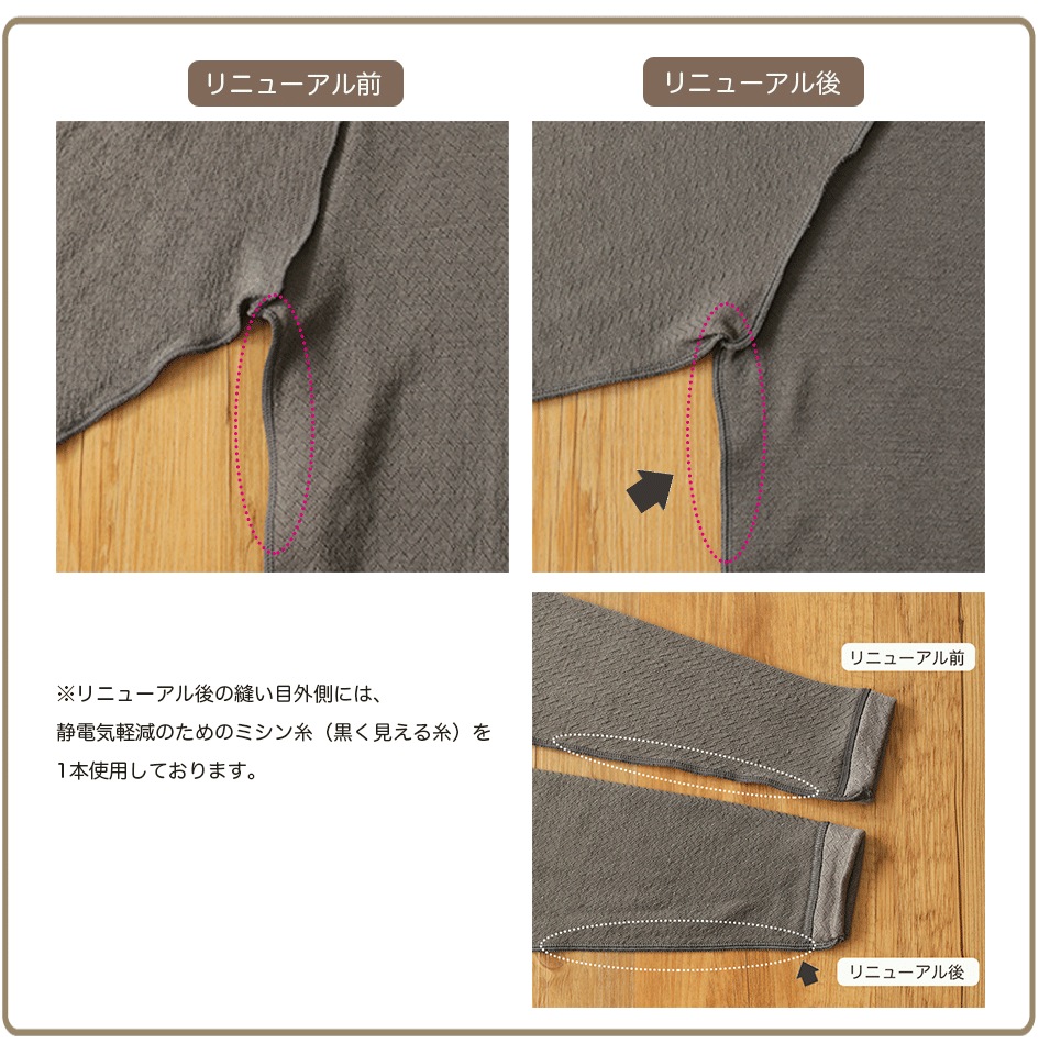 ・2018年2月14日販売分より、静電気軽減のためのミシン糸を1本使用しております。