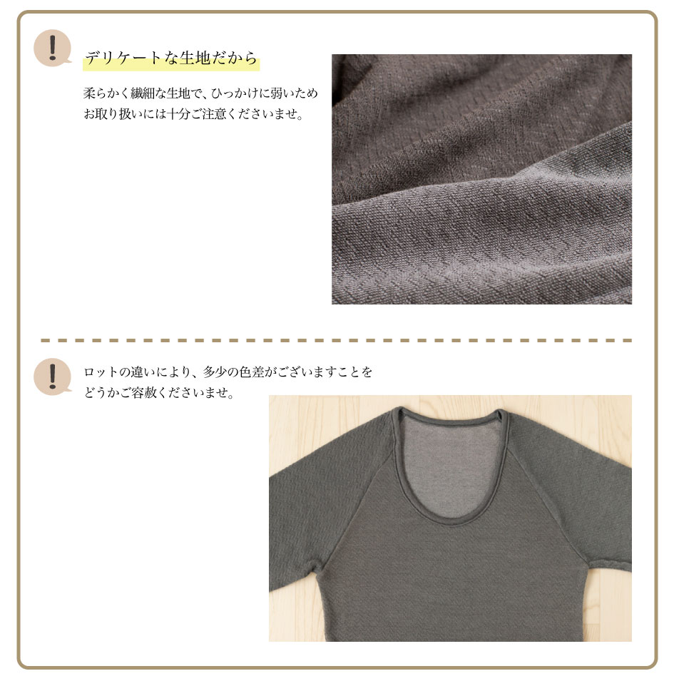 ・天然繊維のため、ご使用状況や摩擦により毛玉ができやすくなっております。