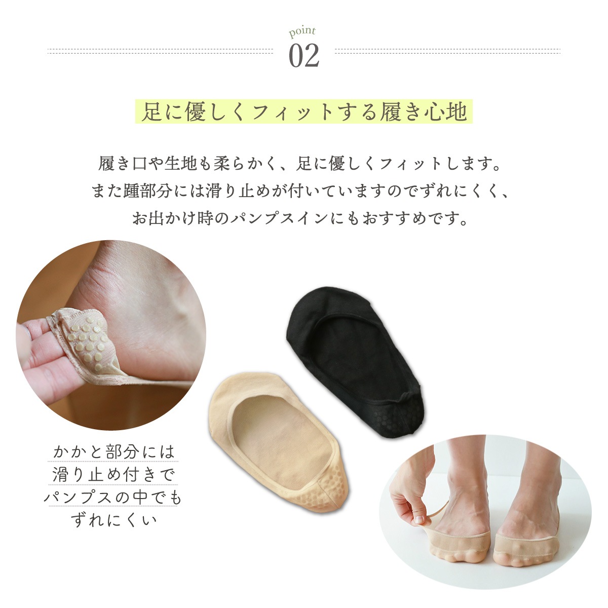 浅めの編み方で、くりの大きなパンプスでも見えないようにできています。