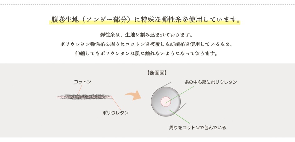 ※編みこみ伸縮糸はコットンに包まれており、肌に触れないよう編み上げています。